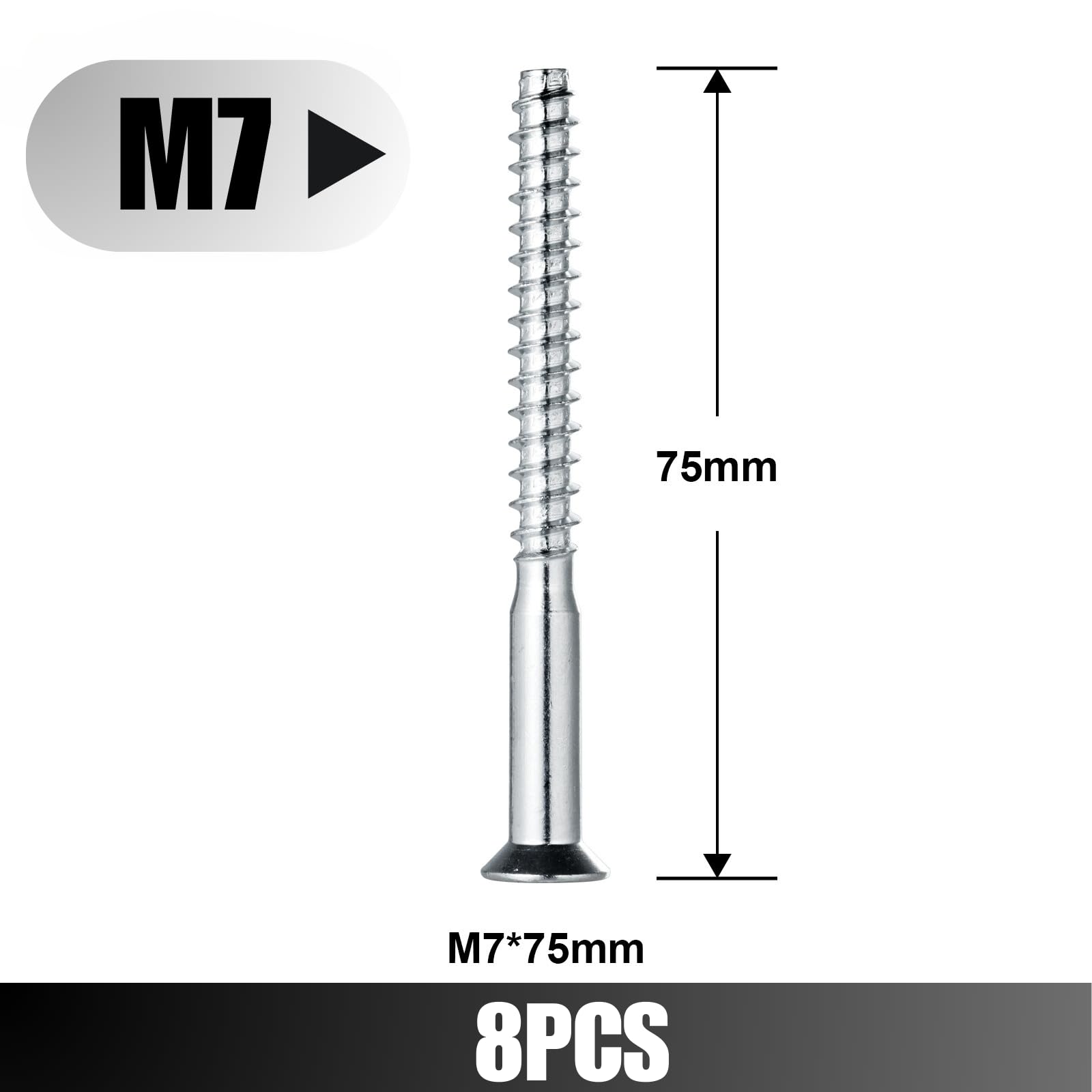 Confirmat Screws, M7 x 75 mm 8 PCs, Hex Socket Drive Countersunk Furniture Connecting Self-Tapping Screw for IKEA Part 104323/104325