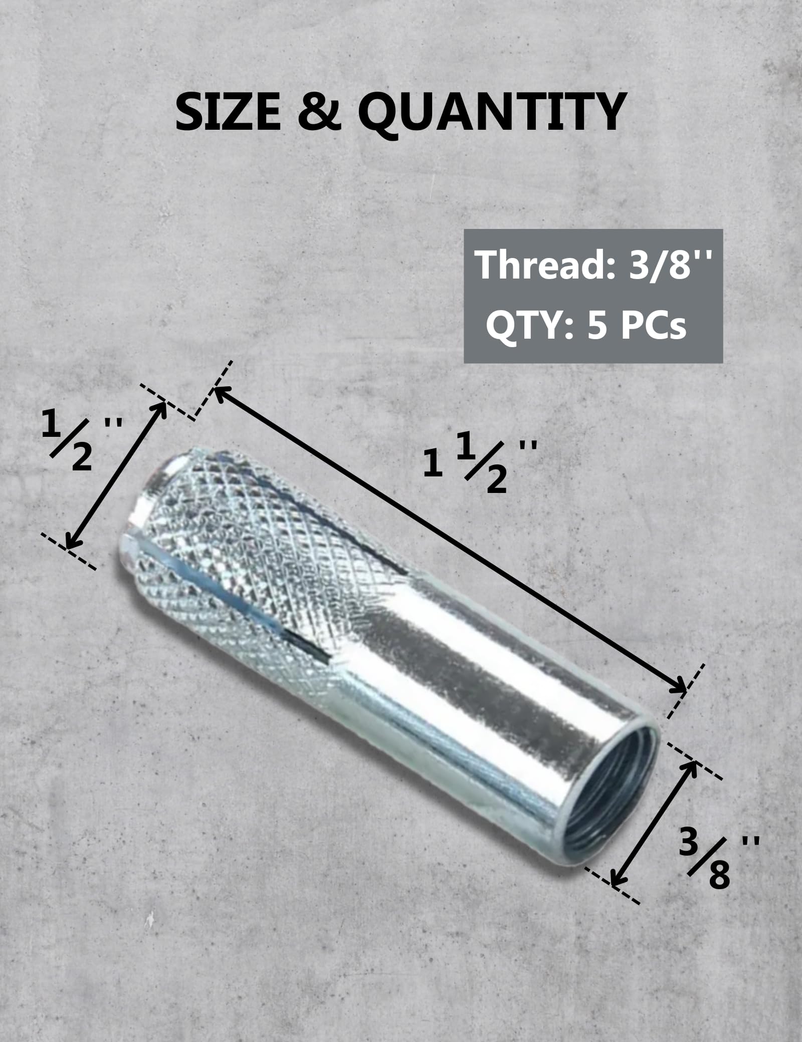 Drop-in Anchors, 5 PCs 3/8"-16 Zinc-Plated for Concrete, Secure Mounting, Industrial-Strength, Easy Installation - Perfect for Home, Construction, and Outdoor Applications